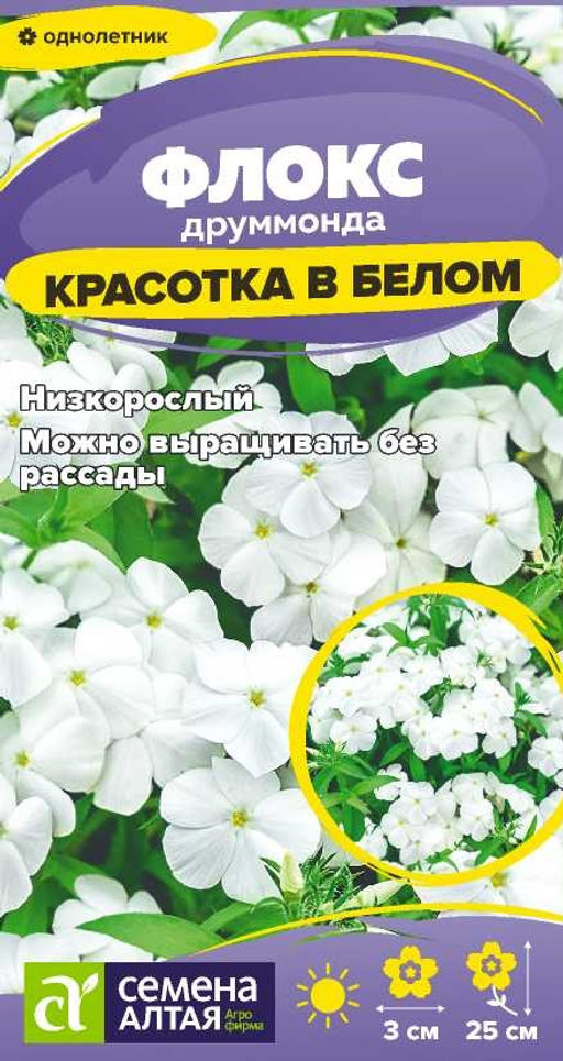 Цветы Флокс Красотка в белом друммонда/Сем Алт/цп 0,05 гр.