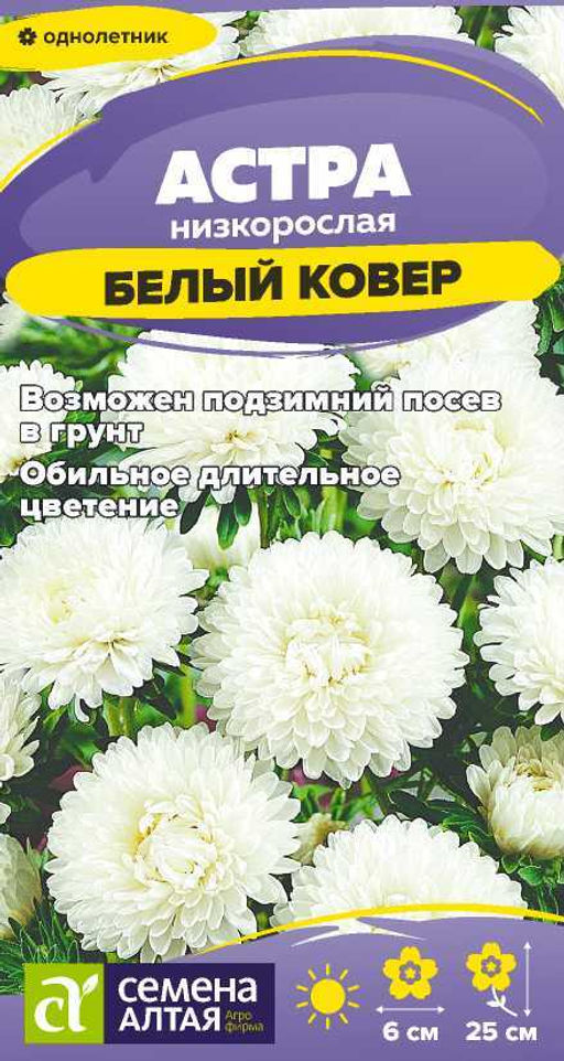 Цветы Астра Белый Ковер низкорослая/Сем Алт/цп 0,1 гр.