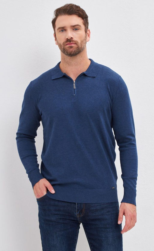 Джемпер мужской с отложным воротником на молнии F121-1581 синий