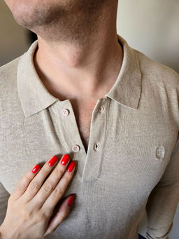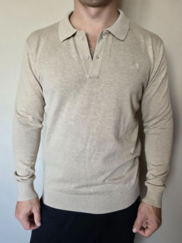Джемпер мужской с отложным воротником и планкой на пуговицах F221-15-22021 бежевый