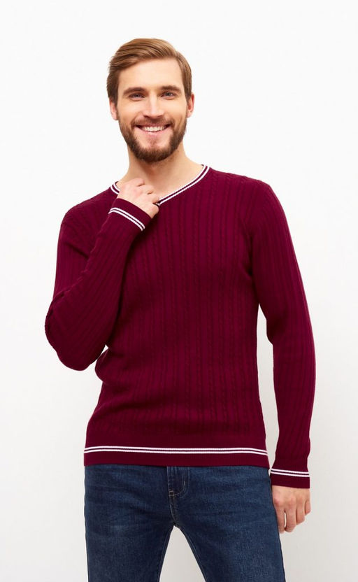 Пуловер с контрастной V-образной горловиной F221-15-3010 бордовый