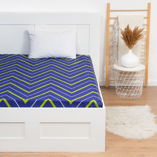 Простыня Этель Зелёно-синие зигзаги 200х220, поплин, 125 г/м2