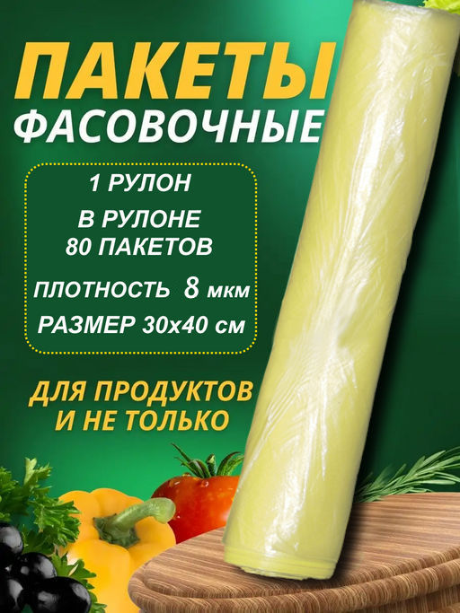 В наличии без ТР / Пакеты фасовочные 30х40см 8мкм СВЕТЛО-ЖЁЛТЫЙ 1рул/80шт.