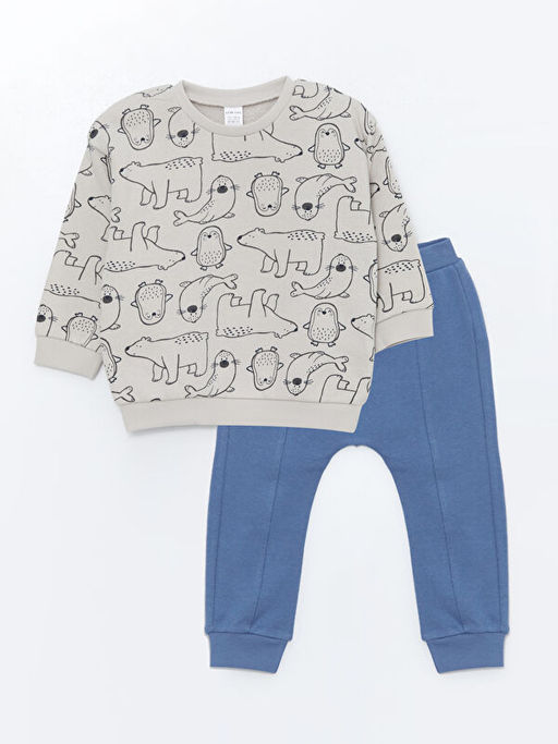 Bisiklet Yaka Erkek Bebek Sweatshirt ve Pantolon 2li Tak?m