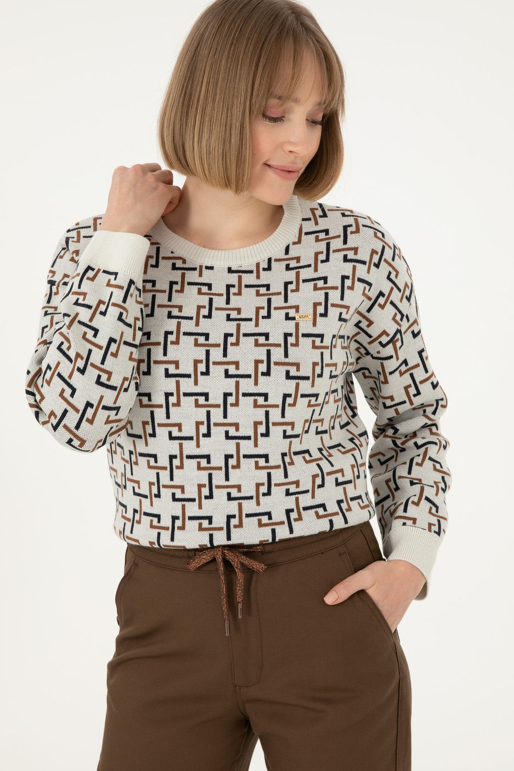 Женский кремовый свитер с круглым вырезом Неожиданная скидка в корзине