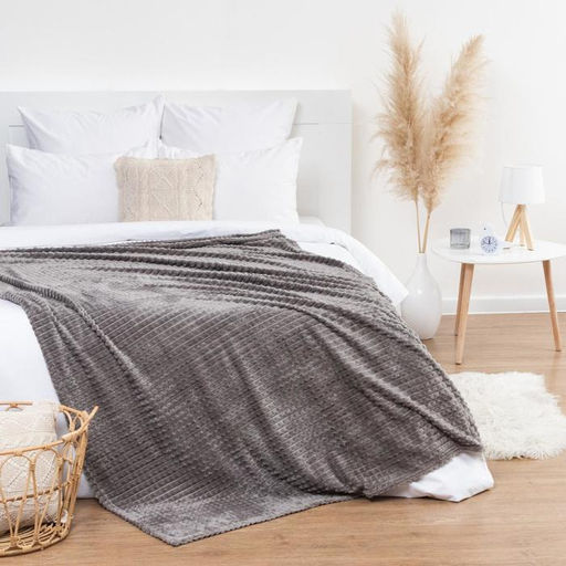 Плед Этель "Клетка" 180*200 см, цв.серый, корал-флис, 240гр/м2, 100% полиэстер