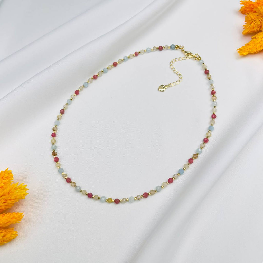 Колье для "Весов" из Аквамарина,Рутилового кварца и Родонита