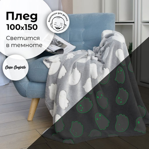 Плед светящийся Casa Conforte Stella Casper 100х150см, серый, фланель 190 гр/м, пэ100%