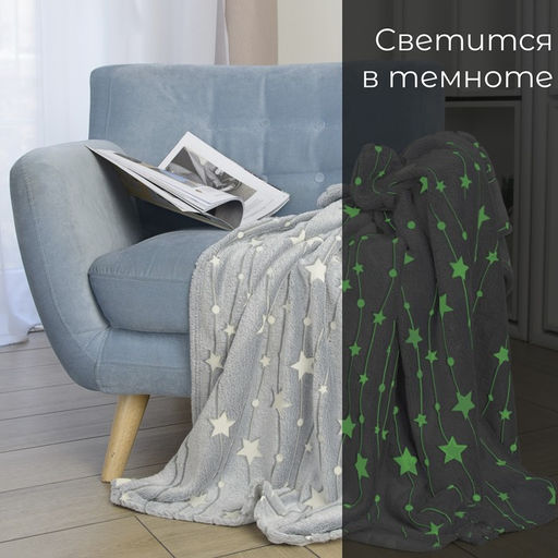 Плед светящийся Casa Conforte Stella 100х150см, серый, фланель 190 гр/м, пэ100%