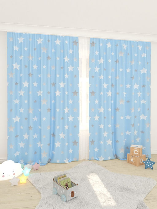 Детские фотошторы Серые звездочки на голубом фоне Блэкаут/150 см/160 см