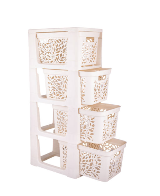 Комод на колесах 4 ящика 18л Leaves молочный