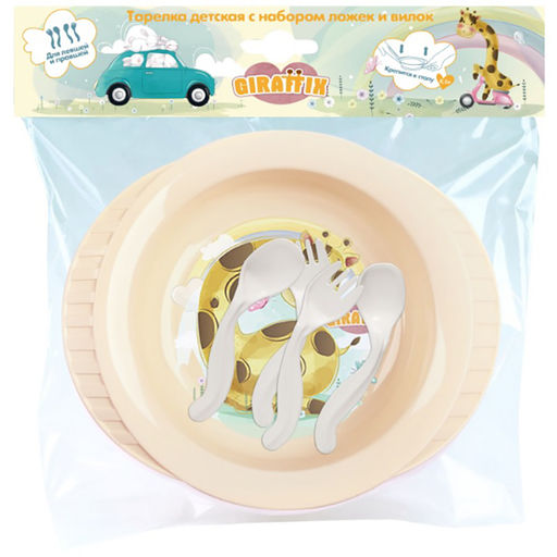 GIRAFFIX - тарелка с набором вилок и ложек зеленый