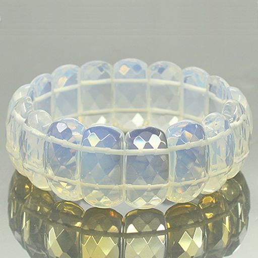 Браслет "Адамат" из искусственного лунного камня с огранкой. Длина браслета 19см, ширина 2,5см.