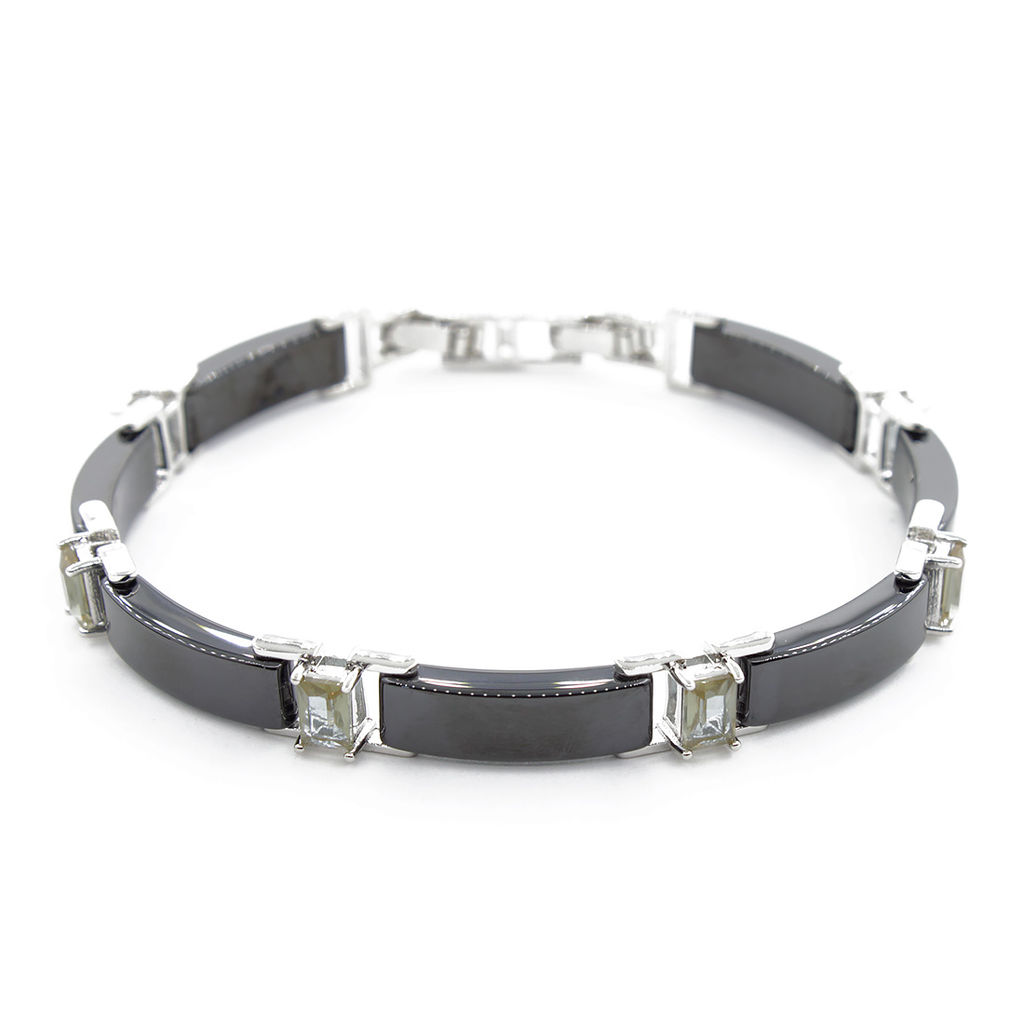 Браслет "Лилу" из черной керамики с Султанитом покрытие светлый металл