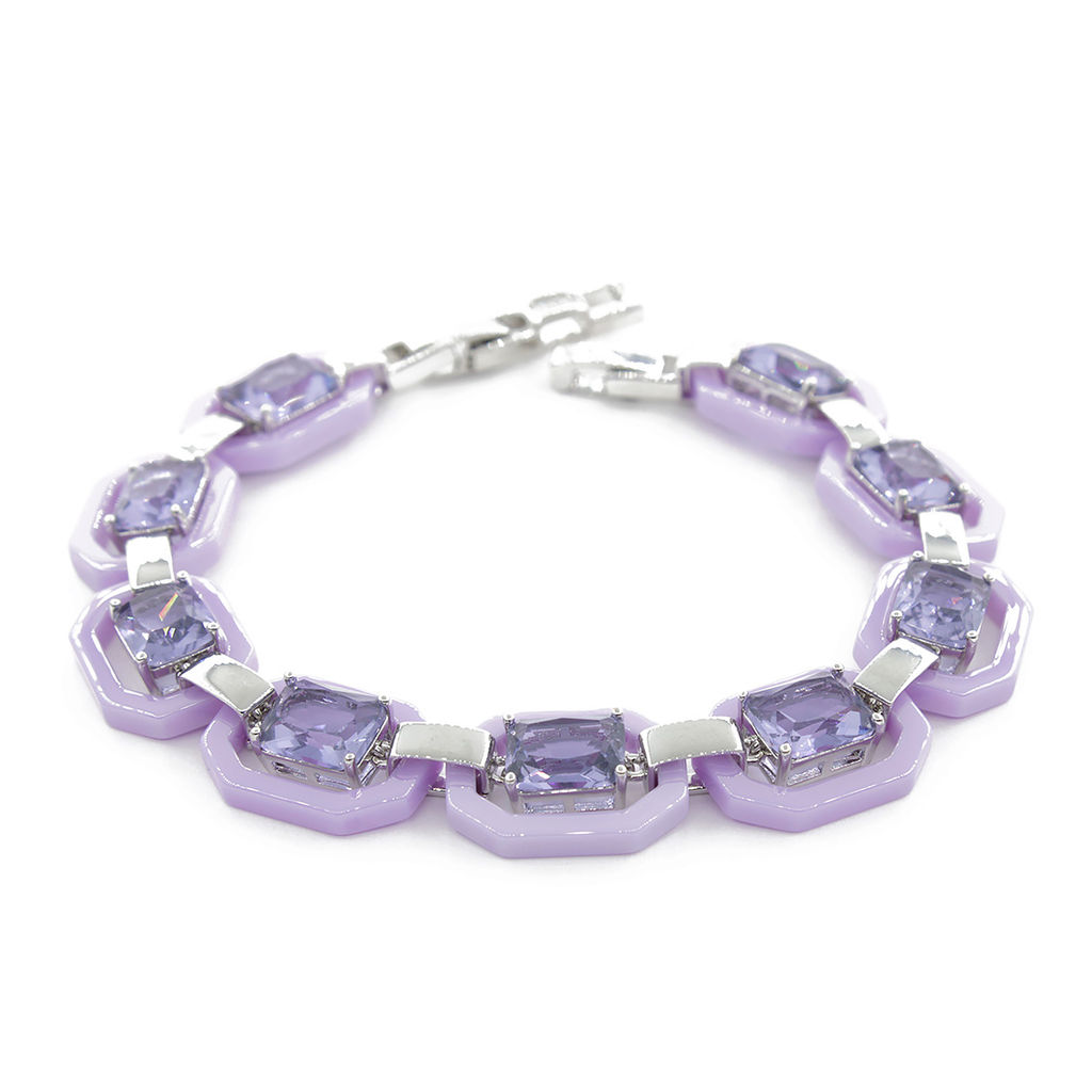 Браслет "Октагон" из фиолетовой керамики с Александритом покрытие светлый металл, длина 18см