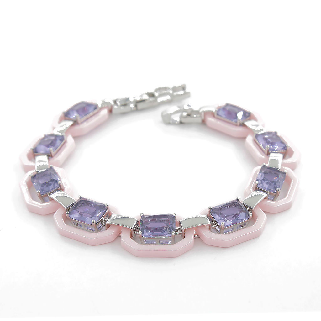 Браслет "Октагон" из розовой керамики с Александритом покрытие светлый металл, длина