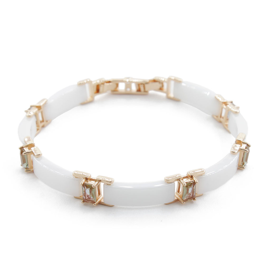 Браслет "Лилу" из белой керамики с Султанитом покрытие под золото, длина 20см