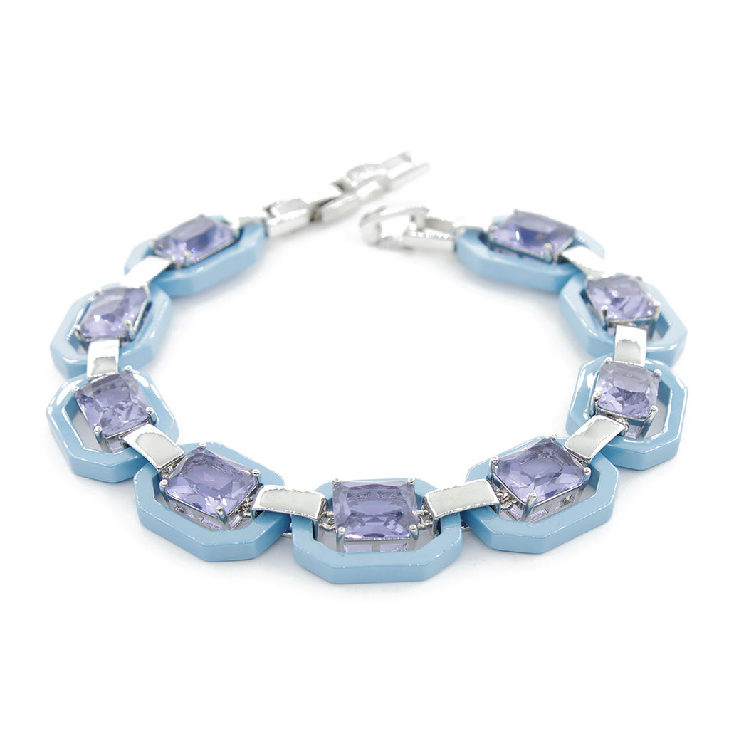 Браслет "Октагон" из голубой керамики с Александритом покрытие светлый металл, длина 18см
