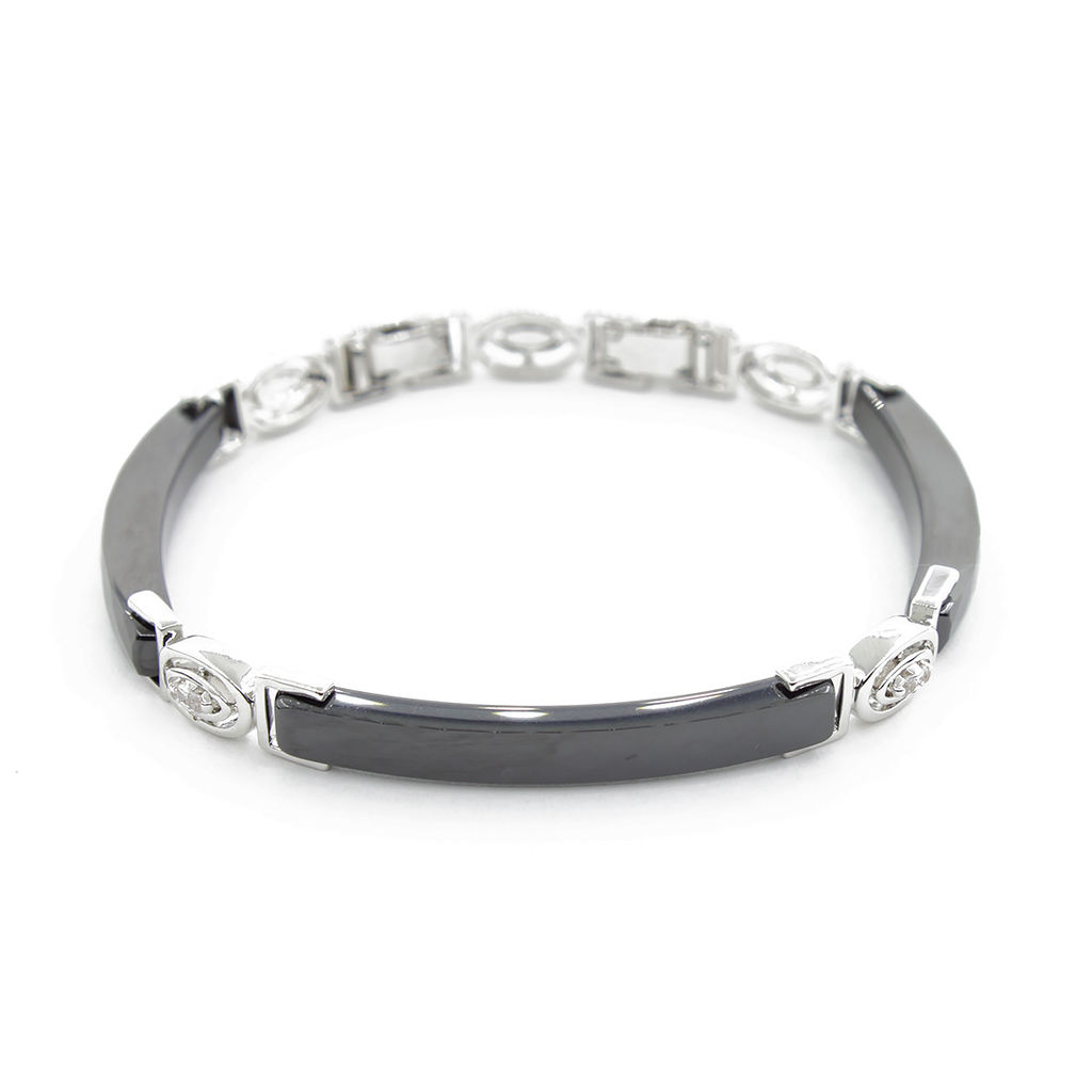 Браслет "Лили" из черной керамики покрытие светлый металл