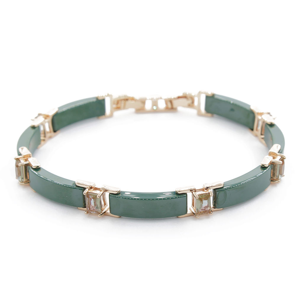 Браслет "Лилу" из зеленой керамики с Султанитом покрытие под золото