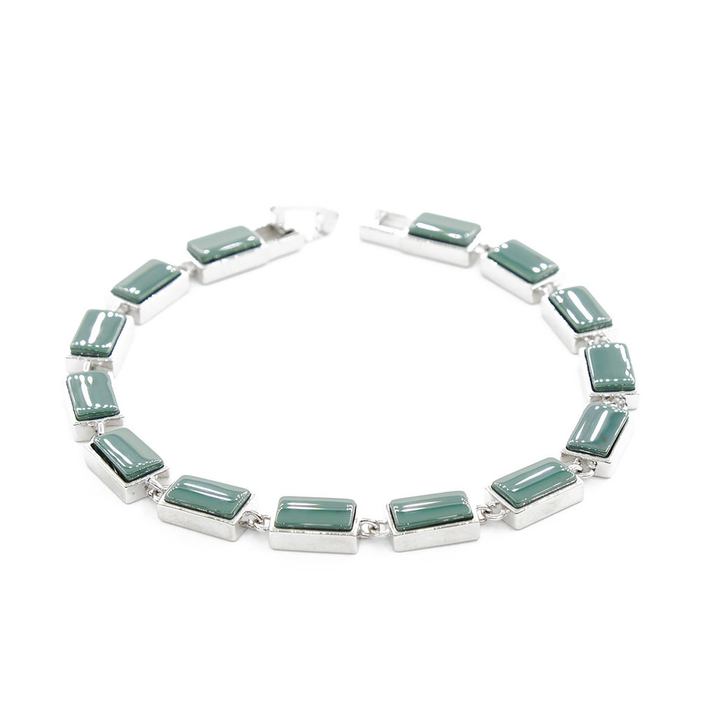 Браслет "Канти" из зеленой керамики покрытие родий
