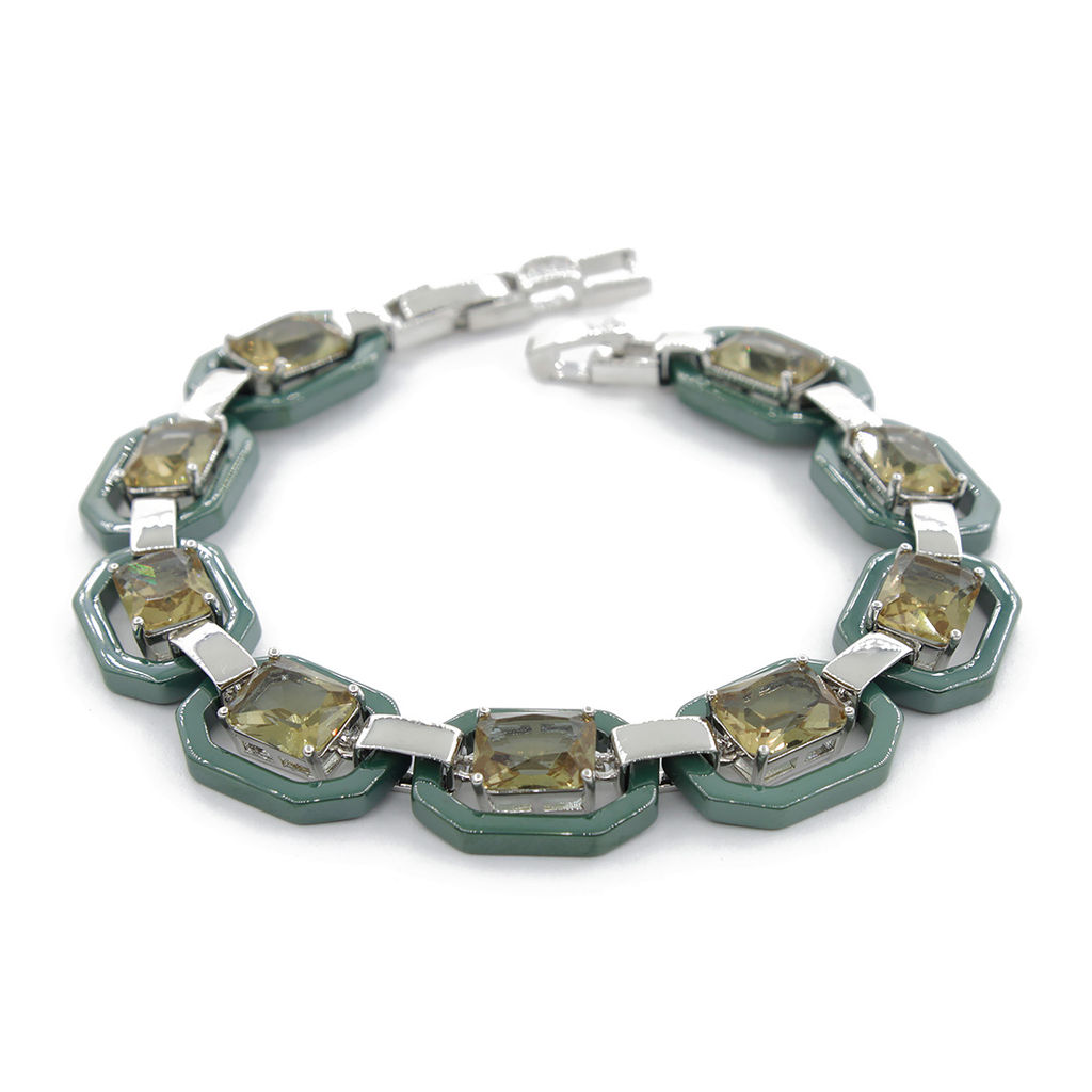Браслет "Октагон" из зеленой керамики с Султанитом покрытие светлый металл, длина 18см