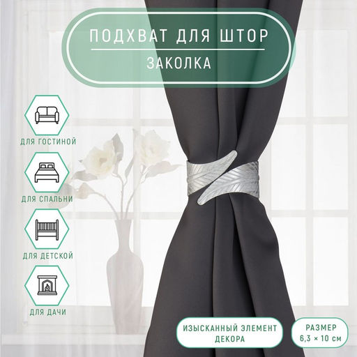 Подхват для штор Лаврушка, d = 6,3 10 см, цвет серый