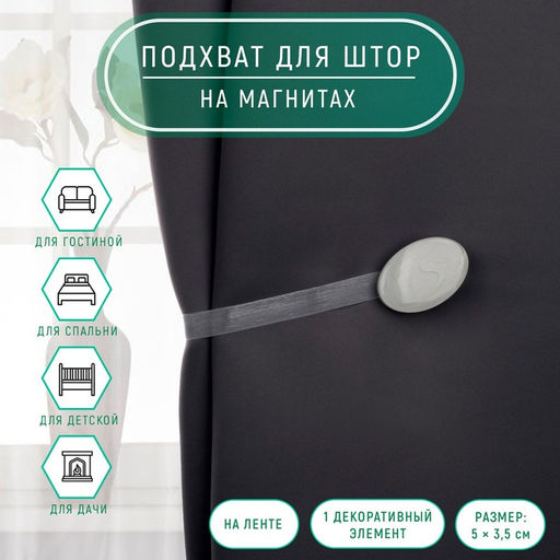 Цена за 3 шт. Подхват для штор, 5 3,5 см, цвет светло-серый