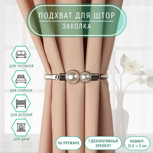 Цена за 2 шт. Подхват для штор Жемчужные круги, 31,5 см, цвет серебряный