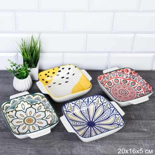 Блюдо квадратное 20х16х5 см с ручками керамика / ZY066 / уп 6/48/