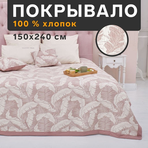 Покрывало хлопковое Этель Перья 150х2405 см, цвет бежевый, 100%хлопок, 300гр/м2
