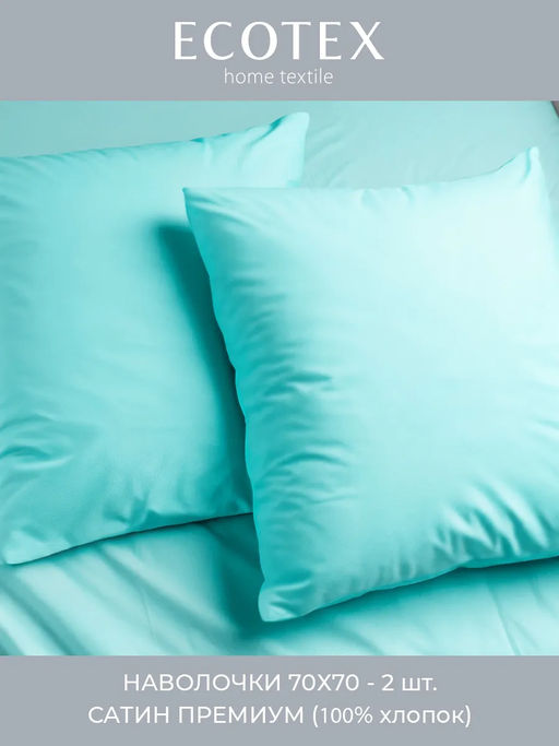 Наволочка 2 шт 70х70 см Моноспейс бирюзовый