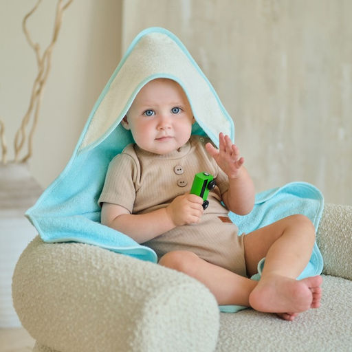 Полотенце уголок махровое Крошка Я, 75х75 см, цвет молочный/мятный, 100% хлопок, 360 г/м2