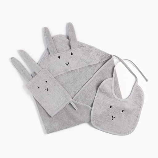 Набор Крошка Я (полотенце-уголок, рукавица, нагрудник), серый, 100% хл, 360 гр/м2