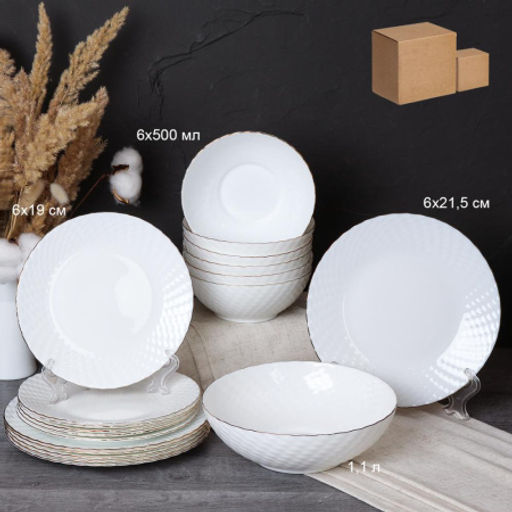Столовый набор 19 предметов фактурный с Золотом / WV19AT/8575685(WHITE GOLD) /уп 2/
