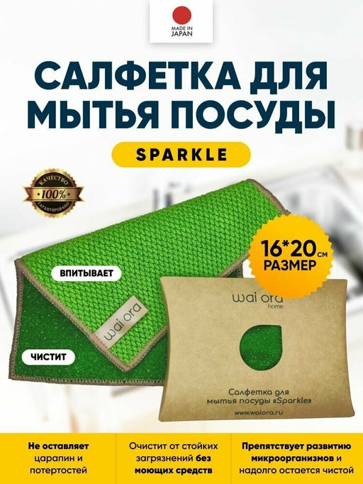 Салфетка для мытья посуды "Sparkle" (Зеленое яблоко)