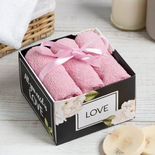 Набор махровых салфеток "С любовью" 30х30 см -3 шт, хлопок, 340г/м3