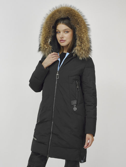 Куртка ПРЕМИУМ КЛАССА зимняя с мехом ЕНОТА, черного цвета