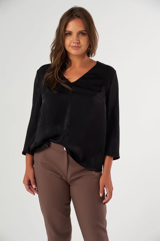 Блузка нарядная с кружевом большого размера черная