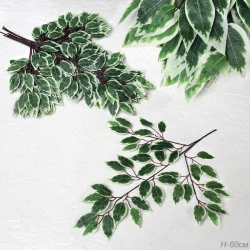 Искусственные листья 12 штук Фикус бело-зеленые / NA77-10 /уп 50/