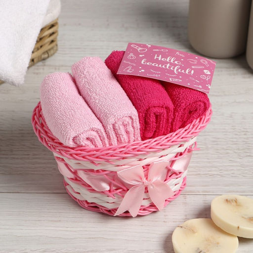 Набор махровых декоративных салфеток Этель "Hello,Beautiful" 30х30см-4шт, цвет розовый, 100% хлопок