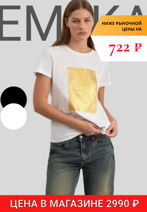 EMKA / Базовая футболка с золотым принтом, 100% хлопок