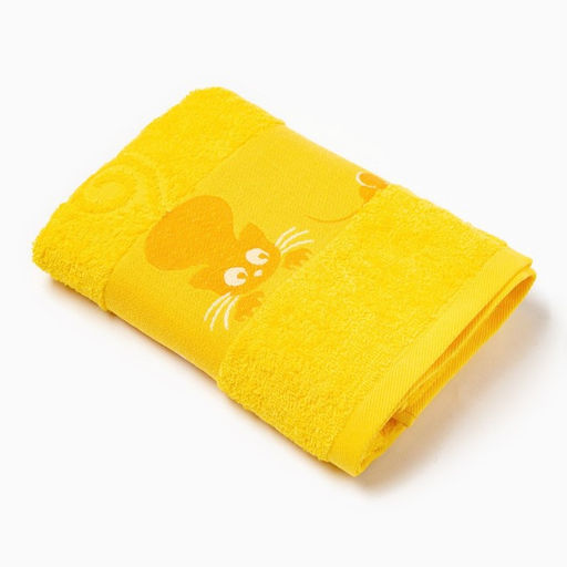 Полотенце махровое с бордюром Кошки, цвет жёлтый, размер 50х90см 380г/м 100% хлопок
