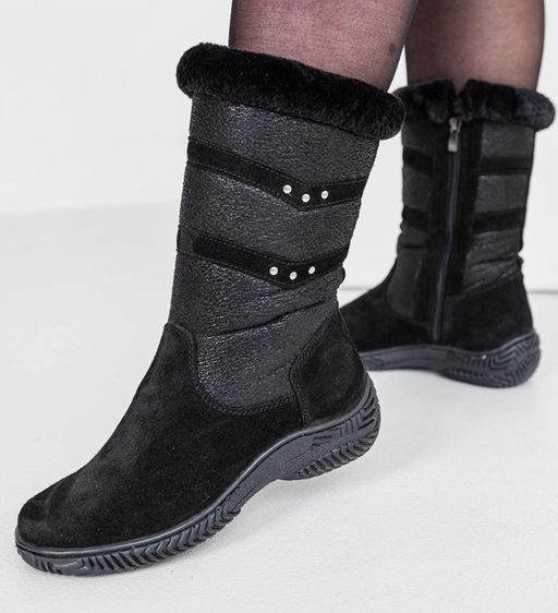Сапоги зимние натуральная замша, натуральная овчина, черные, литая подошва