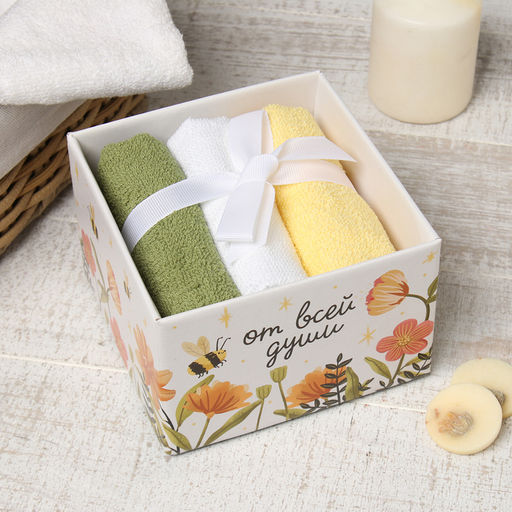 Набор махровых полотенец "Пчёлка" 30х30 см - 3 шт, хлопок 340гр/м2