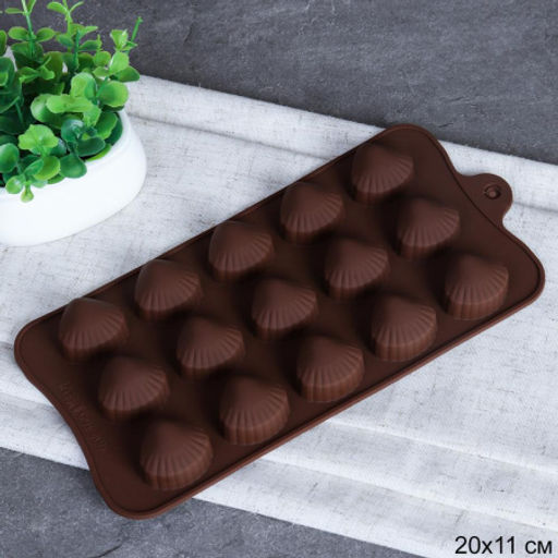 Форма для конфет мармелада и льда 15 ячеек силиконовая Ракушки / R-110 /уп 120/ 21х11х1,7см/