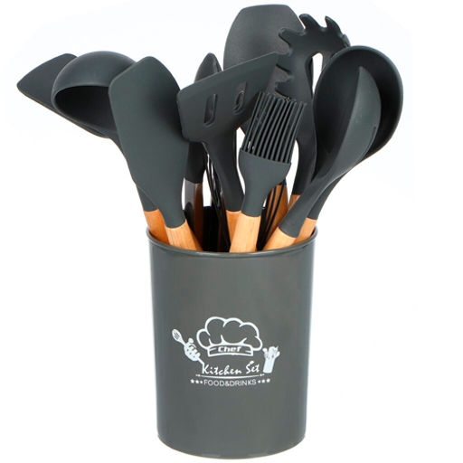 Набор кухонных принадлежностей Daniks Y4-7681 12 предметов, бамбук, силикон, на подставке (455268) /DANIKS/