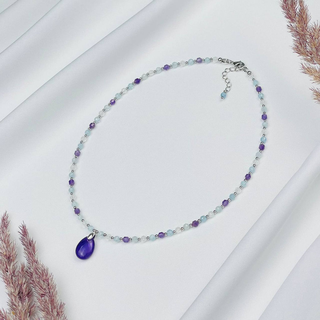 Колье для "Рака" из Аквамарина,Аметиста и Горного Хрусталя