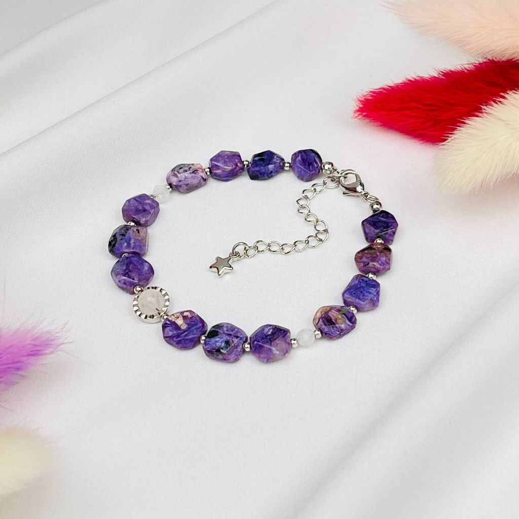 Браслет из Чароита и Лунного камня