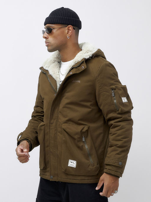 Куртка молодежная мужская зимняя с мехом темно-коричневого цвета 2611TK